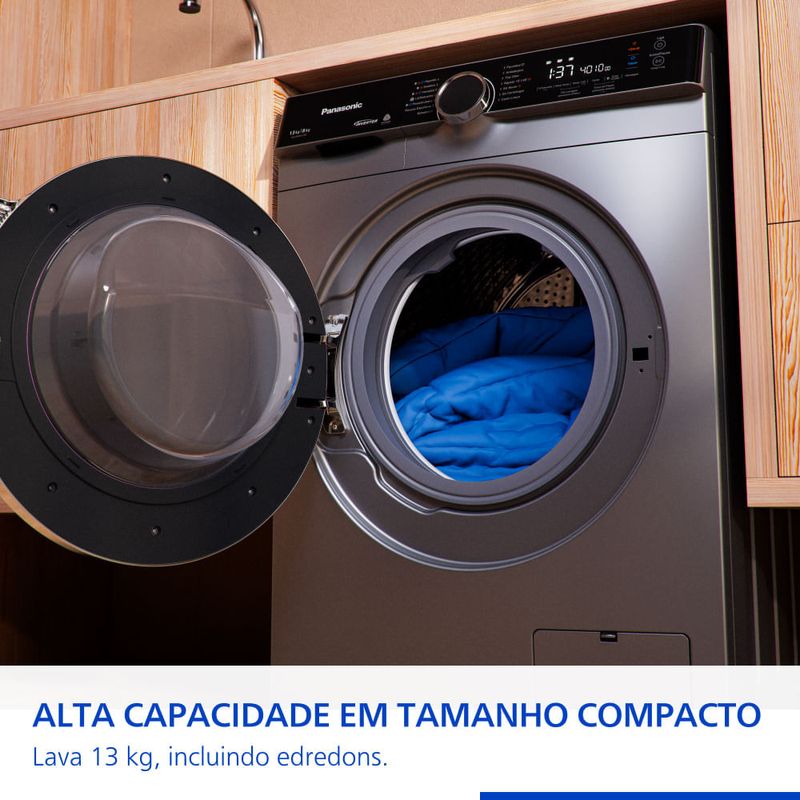 Lava e Seca Intuitive+ Panasonic MaxWash 13kg/8kg Função Vapor+ Antialérgico Titânio - NA-S26MK1LB