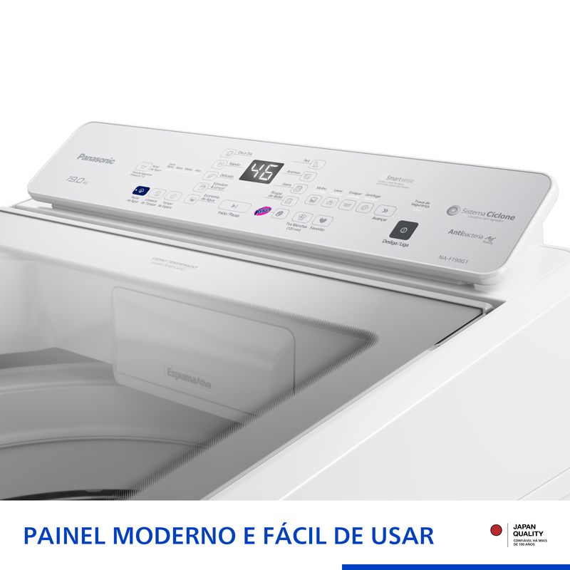 Máquina de lavar Intuitive+ Panasonic 19kg Lavagem Eficiente SmartSense Sistema Ciclone Ciclo Pet Branca - NA-F190G1W